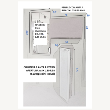 _ pensile in MDF* colore wengè con anta a ribalta; maniglia sottile cromo lucido.