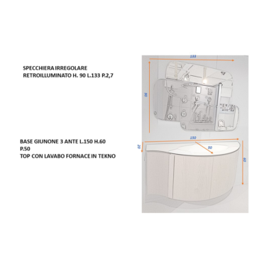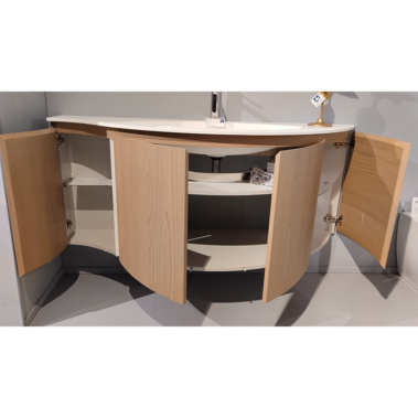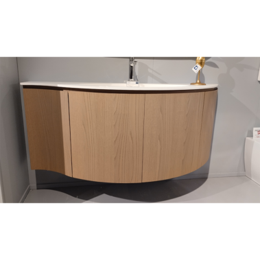 mobile sospeso in MDF*, finitura castagno cumino, con curva centrale.