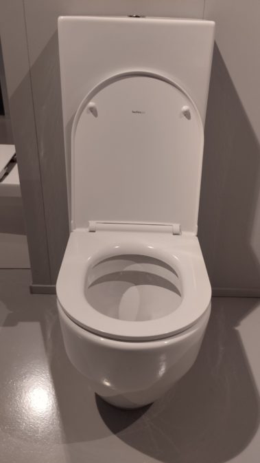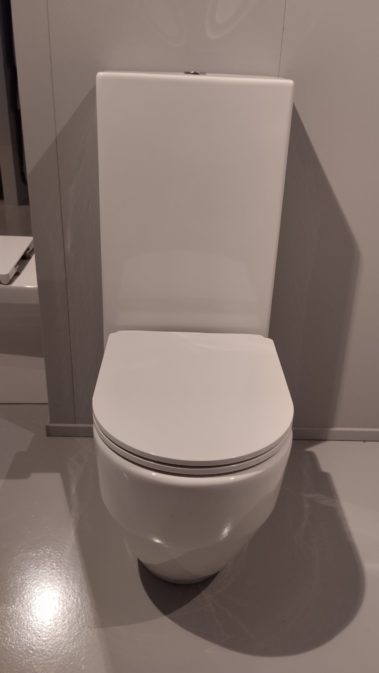 completo di cassetta in ceramica alta e sedile slim bianco, con chiusura normale.